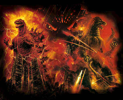Welcome to the secret tribute page to one of my heroes: Godzilla. Now, without delving too deeply into his obvious issues with anger management, let me just say that I feel he's not the monster he's perceived to be. He's just perhaps a little misunderstood. In hindsight, I think we'd all agree that post-nuclear Japan was probably not the ideal place to raise a 50-foot lizard. Imagine if you woke up in a miniature Tokyo. You'd want to kick some shit over too. Having overcome such obstacles (skyscrapers, etc.), I think we can all learn a lot from his example. So, many thanks to Godzilla, who has taught me that it's O.K. to abuse your power as long as that power is absolute. Click on the nuclear symbol below to learn more about ol' Gojira himself. |