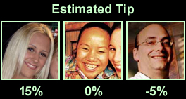 "Everyone is a moon and has a dark - Mark Twain The Setup: Waiters and waitresses (which will from this point on be referred to as "they" or "them") are paid to take orders and bring restaurant patrons their food and drinks in a timely manner. Tipping is and always should be optional based on the quality of service received. Restaurants that charge a minimum tip are gouging consumers, turning off consumers like me, and setting themselves up for poor performance by "them." The Payoff: As far as I am concerned, "they" should start the meal off expecting a $0 tip (or less). Only through superior performance, laughing genuinely at all of my jokes, and flawless execution should expect a tip of anywhere near 15%. Brass Tacks: All of "them" that are male or unsightly females are wasting time trying to earn a tip from me and in my opinion, should immediately quit and find another profession. Female "them" with good looks are the only ones with a slight chance for tippage... even then, performance is a key element. Let's be frank, I start off disliking a waiter. At least I'm not biased in that regard.